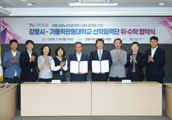 이날 협약식은 김홍규 강릉시장, 이웅균 가톨릭관동대학교 산학협력단 단장 등 관계자들이 참석한 가운데, 협약의 취지 설명, 협약서 서명 및 기념촬영 순으로 진행됐다.