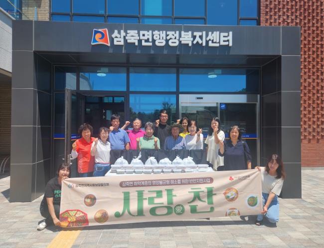 사랑愛찬 밑반찬 지원 사업은 삼죽면 지역사회보장협의체 특화사업으로 월 2회, 위원들이 직접 밑반찬을 만들어 경제적 어려움과 고립된 취약계층(독거노인, 장애인 등) 15가구에 밑반찬을 전달하면서 안부를 살피고, 따뜻한 이웃사랑을 실천하는 사업이다.