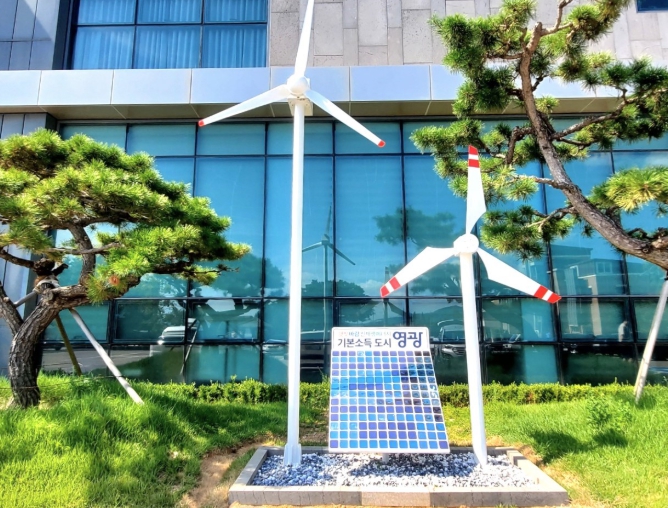 [뉴스노크=김인호 기자] 영광군은 지난 29일, 청사와 읍·면사무소 외부 공간에 태양광과 풍력발전기를 형상화한 신재생에너지 모형을 설치하고, 주민들을 대상으로 친환경 홍보에 나섰다고 밝혔다.