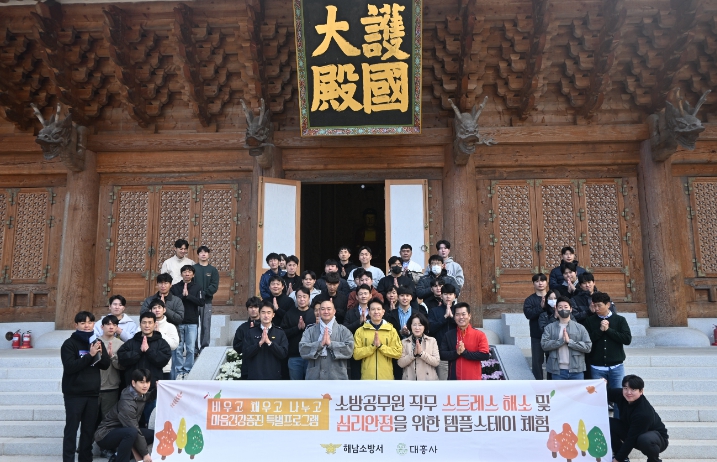 [뉴스노크=김인호 기자] 해남소방서가 11일부터 13일까지 해남 대흥사에서 직원의 마음건강 회복 및 재충전을 위한 특별프로그램을 운영한다고 밝혔다.