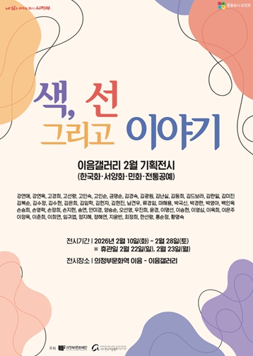 [뉴스노크=김인호 기자] 의정부문화재단과 한국미술협회 의정부지부는 의정부 지역작가들이 참여하는 기획전 《색, 선 그리고 이야기》를 설 명절을 맞이해 오는 2월 10일부터 2월 28일까지, 의정부문화역-이음 이음 갤러리에서 공동 개최한다.