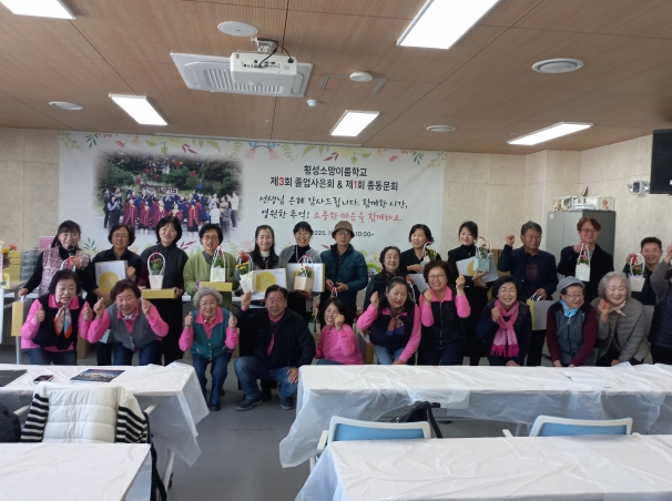 [뉴스노크=김인호 기자] 횡성군은 성인 문해 학습장인 횡성소망이룸학교의 제3회 졸업사은회 및 제1회 총동문회를 28일 평생학습관 5층 다목적강당에서 개최했다.