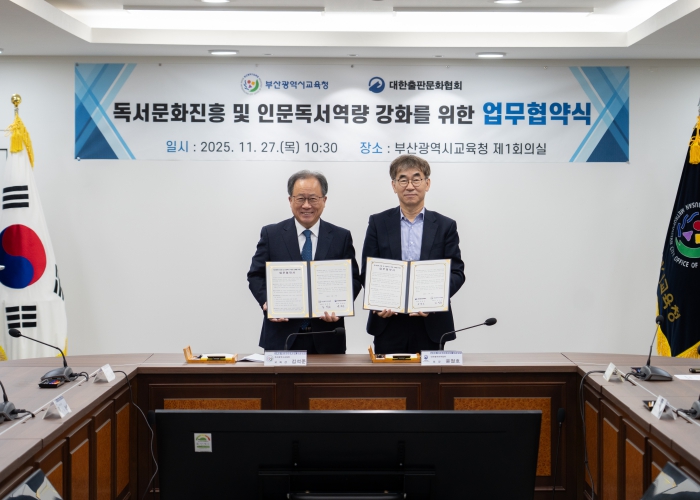 [뉴스노크=김인호 기자] 부산광역시교육청은 27일 오전 부산교육청에서 대한출판문화협회와 독서문화 진흥을 위한 업무협약을 체결했다고 밝혔다.