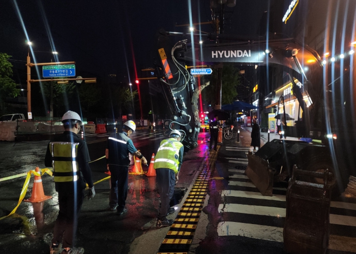 다행히 지난 17일 호우특보가 발효되자 공사 현장의 근로자 914명, 장비 134대를 신속히 지상으로 대피, 인명 및 장비 피해는 발생하지 않았다.