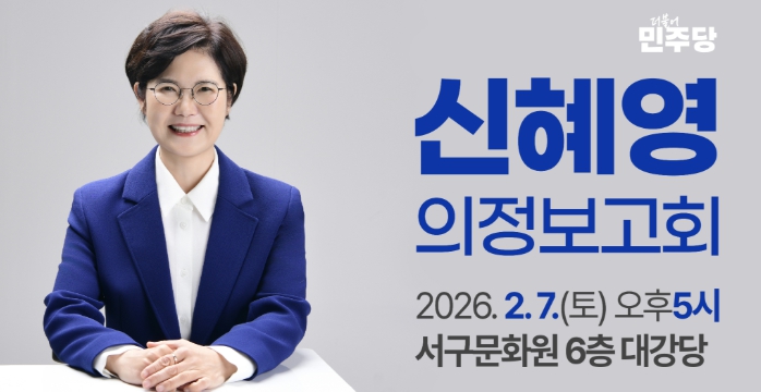 신 의원은 ▲시각장애인 보행권 확보를 위한 점자블록 설치 및 관리 실태 개선 ▲어린이 보호구역 내 방호울타리 안전 전수조사 및 하자 보수 촉구 ▲디지털 성범죄 및 관계성 범죄 예방 대책 마련 등 사회적 약자를 보호하고 안전한 서구를 만들기 위해 힘써온 입법·의정 활동을 상세히 보고한다.