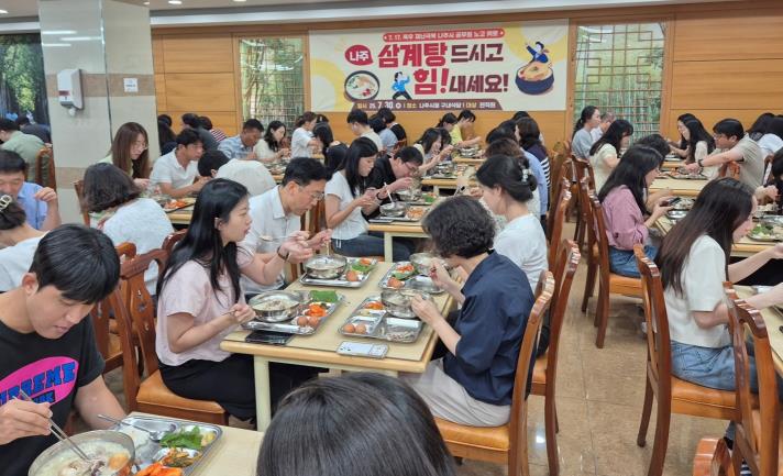 이번 행사는 대한양계협회 나주시지부의 삼계닭 후원으로 마련했으며 무더운 여름 공직자들의 사기 진작과 건강 회복을 위해 따뜻한 한 끼로 마음을 전하는 자리였다.