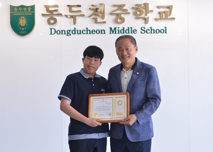 ▲ “폭염 속 따뜻한 나눔”동두천중학생, 노점 할머니 도운 선행으로 동두천시의회 의장 표창 수상 |