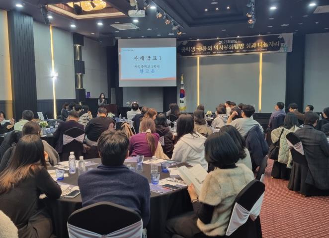행사는 식전 공연을 시작으로 ▲ 2025 역사문화탐방 경과 보고 ▲ 학교별 역사문화탐방 운영결과 및 학생 소감 나눔 ▲ 국내·외 탐방 우수 사례 발표 ▲ 2026 역사문화탐방 운영 안내 및 생각 나눔 순으로 진행됐다.