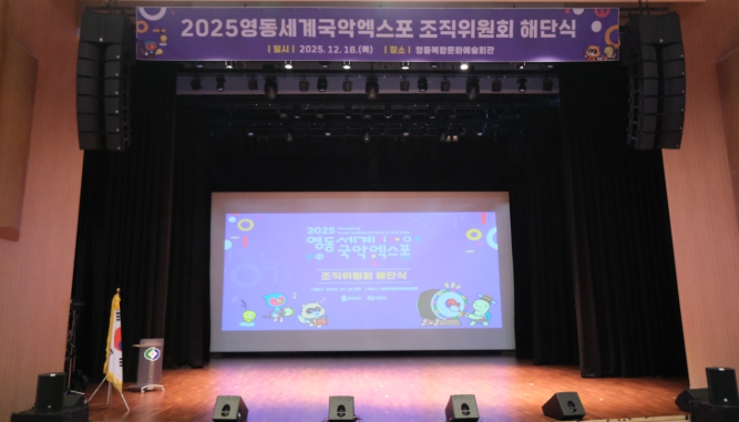 [뉴스노크=김인호 기자] 영동세계국악엑스포조직위원회는 18일, 영동복합문화예술회관에서 '2025영동세계국악엑스포조직위원회 해단식'을 개최하고, 엑스포 성공개최를 기념하고 준비와 운영에 기여한 유공자들을 격려했다.