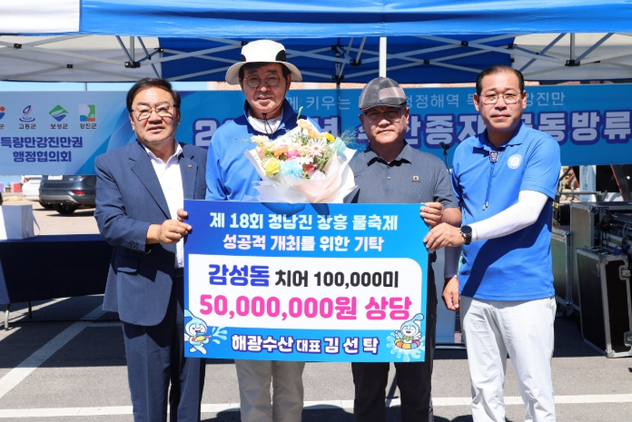 김성 장흥군수는 “매년 감성돔 치어를 기부하고 있는 김선탁 대표에게 감사함을 표하며, 증가하는 해양 레저관광 수요와 더불어 수산자원 증강을 통해 지역 어민들의 소득 증대와 지역 경제 활성화에 기여하겠다”고 밝혔다.