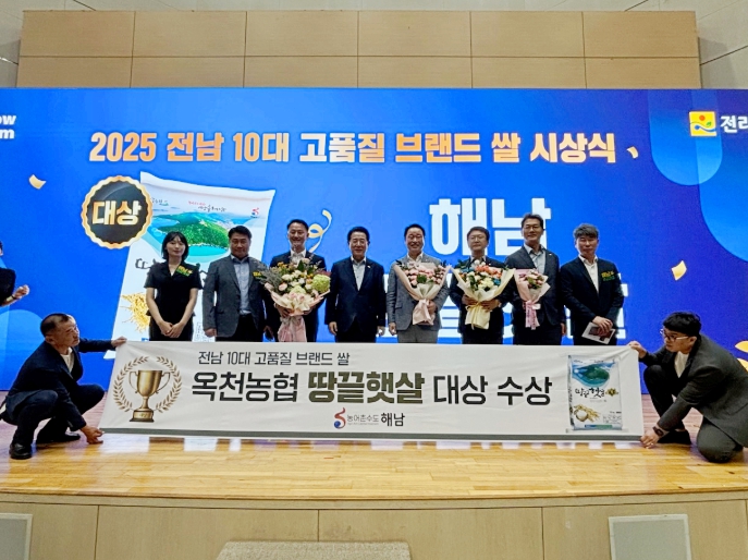 [뉴스노크=김인호 기자] 해남군을 대표하는 프리미엄 쌀 브랜드 ‘땅끝햇살’(옥천농협)이 2025년 전라남도 10대 고품질 브랜드 쌀 평가에서 대상을 받는 쾌거를 안았다.