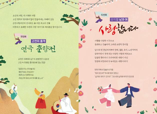 이번 특별공연은 세대를 아우르는 고전 마당극 '춘향전'과 창작 뮤지컬 '사랑합니다'로 구성하여 다양한 연령층의 공감을 이끌어낼 것으로 기대된다.
