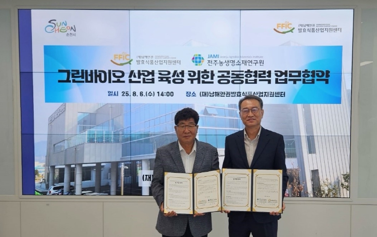 [뉴스노크=김인호 기자] 전주시 출연기관인 (재)전주농생명소재연구원(연구원장 김상남)은 6일 (재)남해안권 발효식품산업지원센터(센터장 김광현)와 지역 간 발효식품산업의 연계협력 강화를 위한 업무협약을 체결했다.