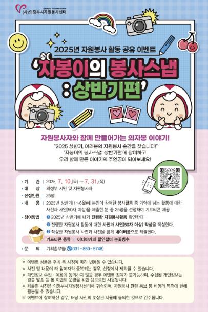 이번 이벤트는 2025년 상반기 동안 자원봉사자들이 참여한 다양한 활동 중 기억에 남는 순간을 사진과 사연으로 공유함으로써, 자원봉사의 의미와 가치를 시민들과 나누고 긍정적인 자원봉사 문화를 확산하기 위해 마련됐다.