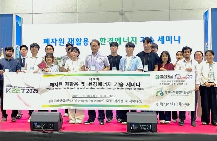 [뉴스노크=김인호 기자] 전남대학교 BK21 미세오염물질 관리 환경에너지융합 교육연구팀은 지난 7월 10일 김대중컨벤션센터 KEET 전시장 내 세미나실에서 ‘제3회 폐자원 재활용 및 환경에너지 기술 세미나’를 성공적으로 개최했다고 밝혔다. 이번 세미나는 3개 기관 공동 주최(BK21교육연구팀, 광주녹색환경지원센터, 친환경자원순환센터)했으며, 자원순환 및 친환경 에너지 기술을 공유해 탄소중립 사회 전환에 기여하고자 마련됐다.