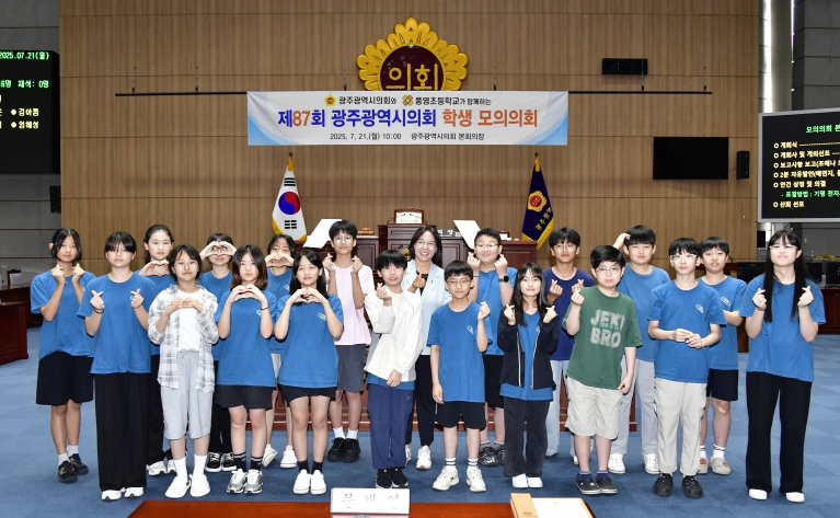 [뉴스노크=김인호 기자] 광주광역시의회는 7월 21일 오전 10시 시의회 본회의장에서 풍영초등학교 학생들을 대상으로 ‘제87회 광주광역시의회 학생 모의의회’를 개최했다.