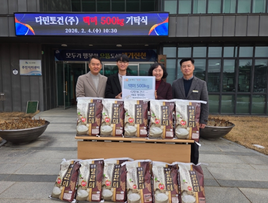 [뉴스노크=김인호 기자] 다민토건(주)(대표 정의민)이 설 명절을 맞아 4일 문백면 행정복지센터를 찾아 소외계층을 위한 백미 500kg을 기탁했다.