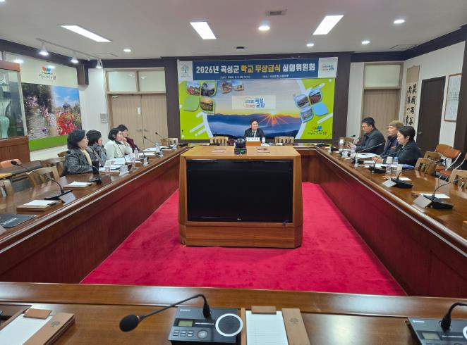 | ▲ 지난 3일 곡성군청 소통마루에서 개최된 ‘2026년 곡성군 학교 무상급식 심의위원회’ |