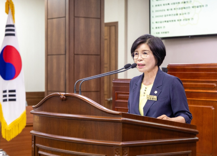 [뉴스노크=김인호 기자] 순천시의회 오행숙 의원(더불어민주당, 승주·주암·송광·서·황전·월등)이 지난 15일 제288회 임시회 제1차 본회의에서“금당공원 명칭을 백강 공원으로 변경하고, 독립운동가 백강 조경한 선생의 추모 공원으로 정비할 것”을 제안했다.