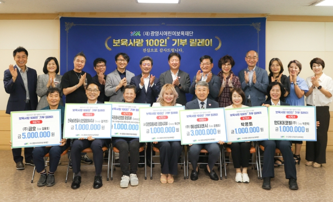 [뉴스노크=김인호 기자] (재)광양시어린이보육재단은 지난 7월 24일 광양시청 만남실에서 ‘보육사랑 100인+ 기부 릴레이’ 후원금 기탁식을 개최했다고 밝혔다.