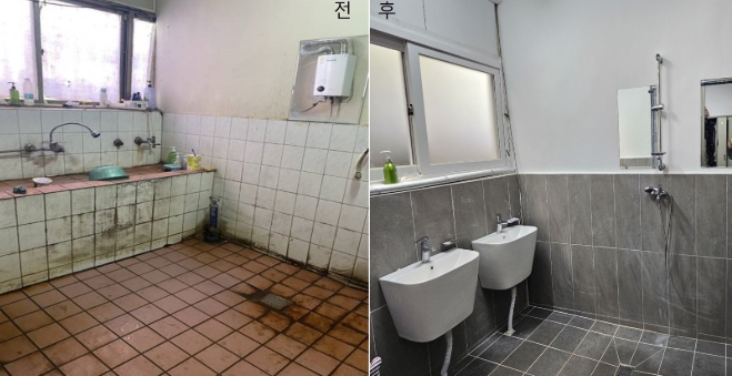▲ 노동자 휴게시설 지원 전후 |