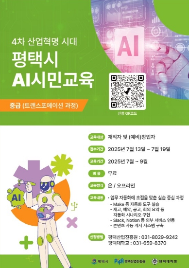 ▲ 평택시, 인공지능(AI) 실무 인재 양성 ‘2단계 트랜스포메이션 과정’ 교육생 모집 |