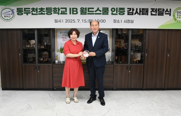 이번 감사패 전달식은 지난 6월, 동두천초등학교가 경기북부에서 두 번째로 국제 공인 교육과정인 IB(국제 바칼로레아) 월드스쿨 인증을 획득한 데 따른 감사의 뜻을 전하고자 마련됐다. 동두천초등학교는 2023년 7월 IB 후보학교로 지정된 이후 약 2년간의 준비 끝에 공식 인증을 받았다.