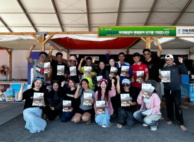 또한 전주 관광 책자와 올림픽 유치 홍보 전단 등의 자료도 배부하며, 부스 외부에는 대형 현수막과 포토존을 설치해 방문객들이 자연스럽게 전주의 매력을 접하고 인증사진을 남길 수 있도록 구성했다.