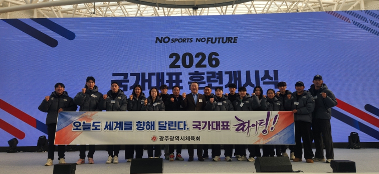 [뉴스노크=김인호 기자] 광주광역시체육회(회장 전갑수)는 7일 오전 10시 충북 진천국가대표선수촌 벨로드롬에서 열린 ‘2026년 국가대표선수단 훈련개시식’에 전갑수 체육회장 등 임직원이 참석해 국가대표선수들의 선전을 기원하고 광주 소속 선수들을 격려했다고 밝혔다.