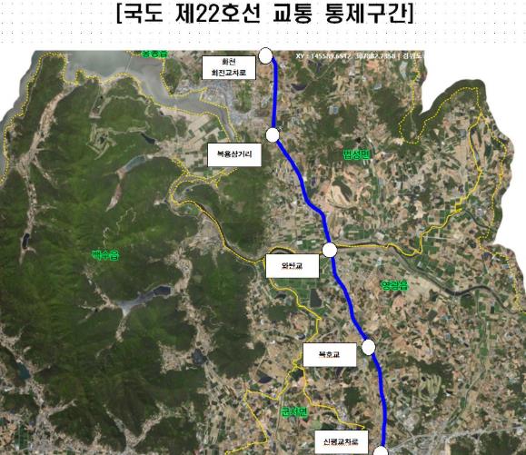▲ 국도 제22호선 교통 통제구간. |