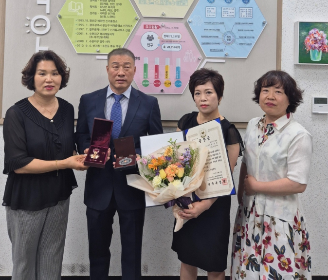 ▲ 광산구가 7일 수완동행정복지센터에서 6·25참전 유공자인 고(故) 송기모 상병 유가족에게 화랑무공훈장과 증서를 전달했다. |