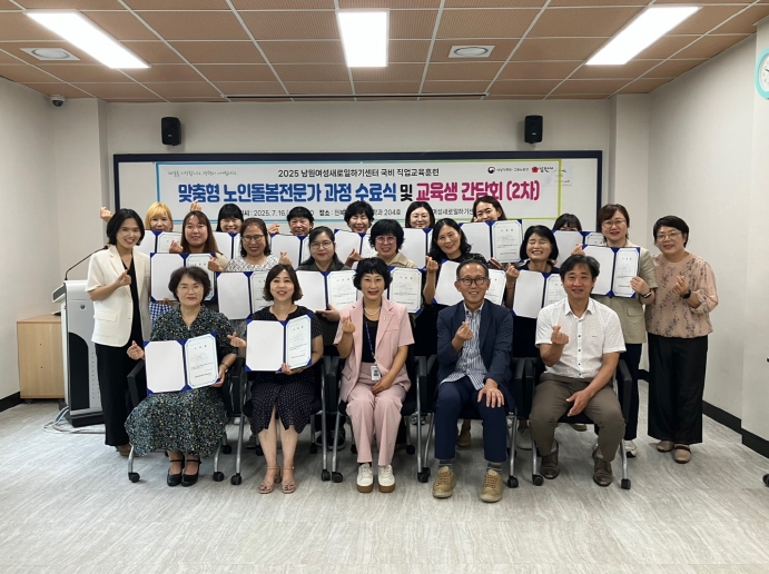 [뉴스노크=김인호 기자] 남원시(시장 최경식) 여성새로일하기센터는 7월 16일 올해 마지막 2025년 직업교육훈련 ‘맞춤형 노인돌봄전문가’ 과정 수료식을 가졌다.