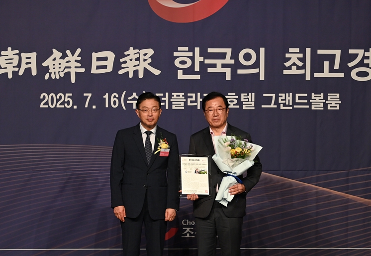 ▲ 2025 조선일보 한국의 최고 경영대상 시상식에서 이현재 하남시장(오른쪽)과 중앙대 황인태 심사위원장(왼쪽)이 기념사진을 촬영하고 있다. |
