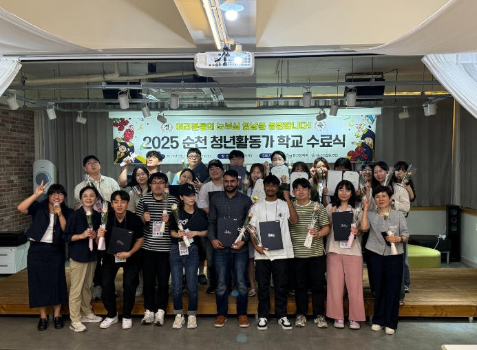 [뉴스노크=김인호 기자] 순천시는 청년활동가학교 교육과정을 마무리하고, 지난 17일 순천청년센터에서 성황리에 수료식을 개최했다고 밝혔다.