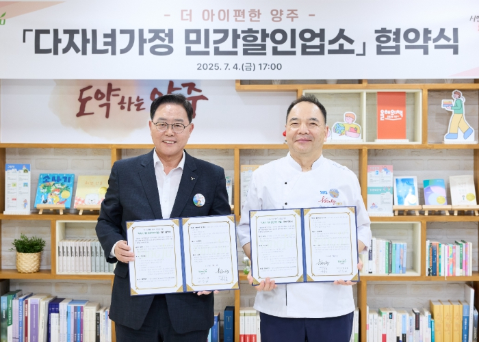 또한 시는 협약에 따라 시 보유 홍보 매체를 통해 민간할인업소를 적극 홍보할 계획이다. 또한, 다자녀 가정 할인업소 인증 현판을 부착해 이용자들이 쉽게 할인처를 확인할 수 있도록 했다. 민간할인업소 현황은 양주시청 누리집과 다둥e카드 앱을 통해 확인할 수 있다.
