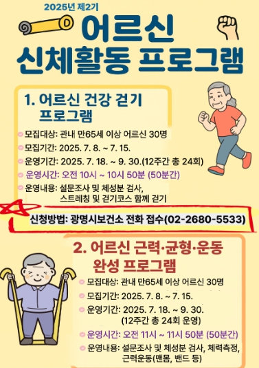 ▲ '제2기 어르신 신체활동 프로그램' 모집 안내문. |