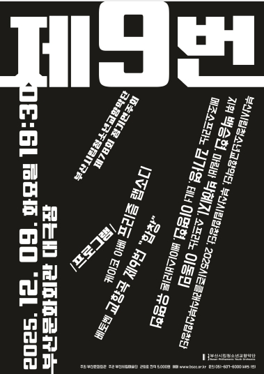 [뉴스노크=김인호 기자] 부산시립청소년교향악단(수석지휘자 백승현)이 특별한 레퍼토리와 한층 성숙해진 사운드로 시민들과 동행해온 2025년을 마무리하며, 12월 9일에 열리는 올해 마지막 무대를 베토벤 교향곡 제9번 '합창'으로 장식한다.