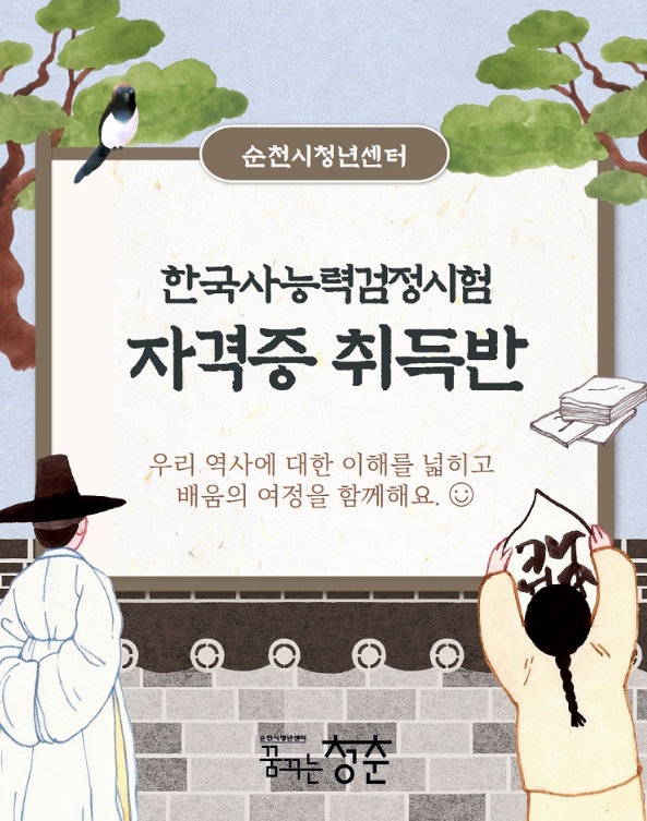 [뉴스노크=김인호 기자] 순천시는 청년들의 역사적 소양을 높이고 실질적인 자격증 취득을 지원하기 위해 ‘한국사능력검정시험 자격증 취득반’ 특강을 운영한다고 밝혔다.