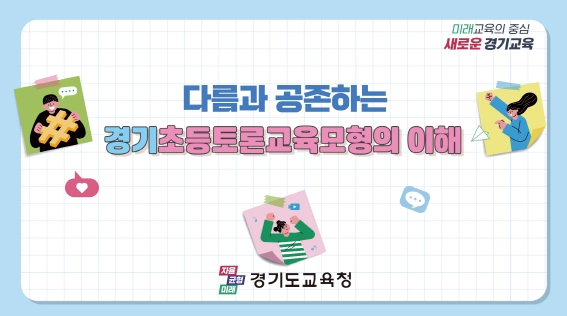 이번 영상은 지난 4월에 안내한 ‘2025 다름과 공존하는 경기초등토론교육’ 자료집에 이은 단계별 이해 자료다. 학생이 서로의 다양성을 존중하고 열린 시민으로 성장할 수 있도록 구체적인 수업에서의 실천 내용이 담겨 있다.