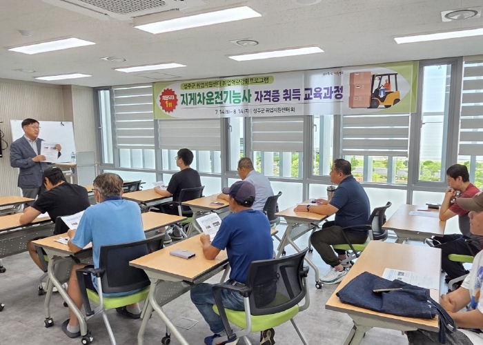 7월 14일부터 진행되는 '지게차운전기능사 자격증 취득과정'에는 20대부터 60대까지 다양한 연령대 지역민 10명이 참여하고 있으며,