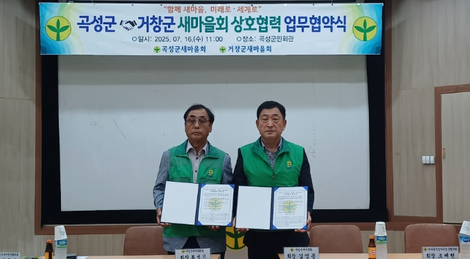 [뉴스노크=김인호 기자] 곡성군새마을회(회장 김영종)와 거창군새마을회(회장 최성기)는 7.16일 군민회관에서 양 지회 및 산하단체 간 교류와 협력을 강화하기 위한 업무협약식을 개최했다.