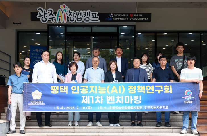 [뉴스노크=김인호 기자] 평택시의회 ‘평택시 인공지능(AI) 정책연구회’가 10일 광주광역시 인공지능기업협력센터와 인공지능사관학교로 1차 벤치마킹을 실시했다.