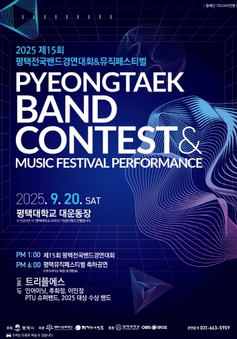 [뉴스노크=김인호 기자] 오는 9월 20일 오후 1시부터 9시 30분까지 평택대학교 대운동장 특설무대에서 ‘제15회 평택전국밴드경연대회 & 뮤직페스티벌’이 펼쳐진다.