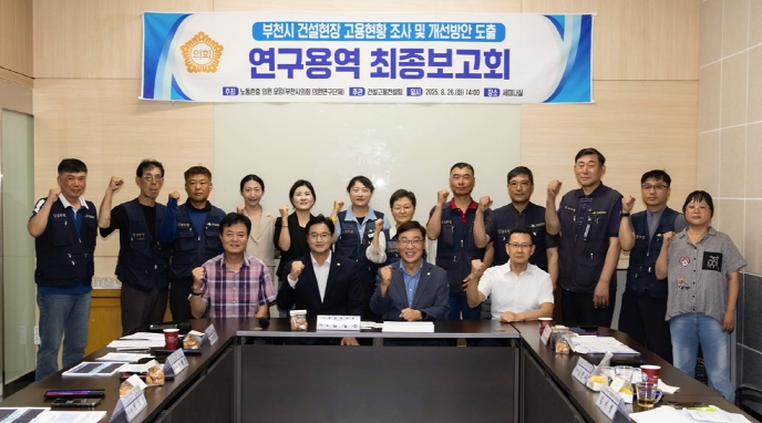 최종보고회에 참석한 김병전 의장은 “이번 연구는 건설노동자의 생명과 안전, 나아가 부천시민의 일자리와 직결된 중요한 과제”라며 “부천시가 선도적으로 노동존중의 가치를 실현할 수 있도록 시와 의회가 함께 노력하겠다”고 밝혔다.