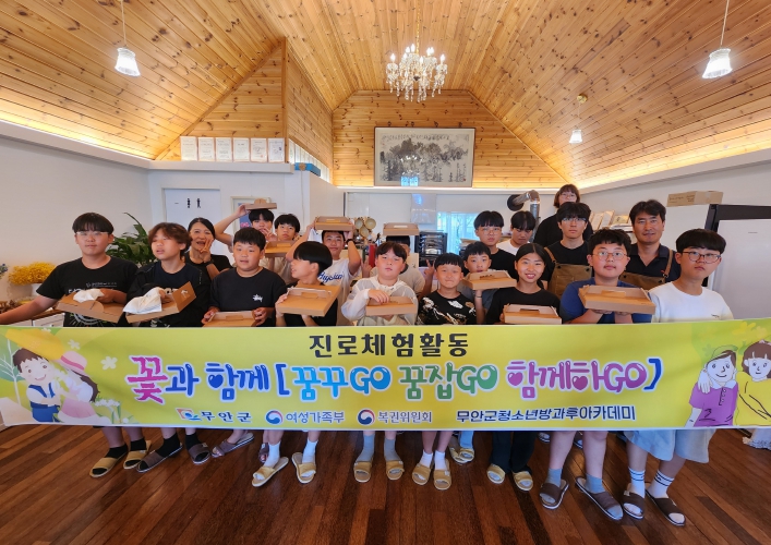 [뉴스노크=김인호 기자] 전남 무안군 청소년방과후아카데미는 지난 7월 29일 무안군지역사회보장협의체와 협력해 청계면에 위치한 체험장 ‘꽃과 함께’에서 진로체험활동 ‘꿈꾸GO 꿈잡GO 함께하GO’를 운영했다.