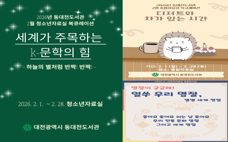 [뉴스노크=김인호 기자] 동대전도서관은 2월 한 달간 도서관 각 자료실에서 주제별 북큐레이션(Book Curation)을 운영한다.