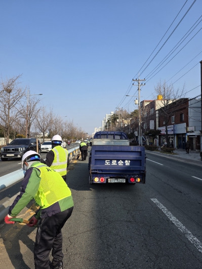 이번 작업은 도로 안전과 미관을 개선하고 안전한 도로 환경을 조성하기 위한 일환으로 백양대로 남영아파트에서 신모라사거리 약 2Km 구간에 실시했다.