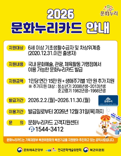 | ▲ 2026 문화누리카드 안내 포스터 |