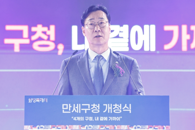 화성특례시는 2일 화성종합경기타운 실내체육관에서 ‘네 개의 구청, 내 곁에 가까이’를 슬로건으로 만세구청 개청식을 열고 4개 구청 체제의 공식 출범을 알렸다.
