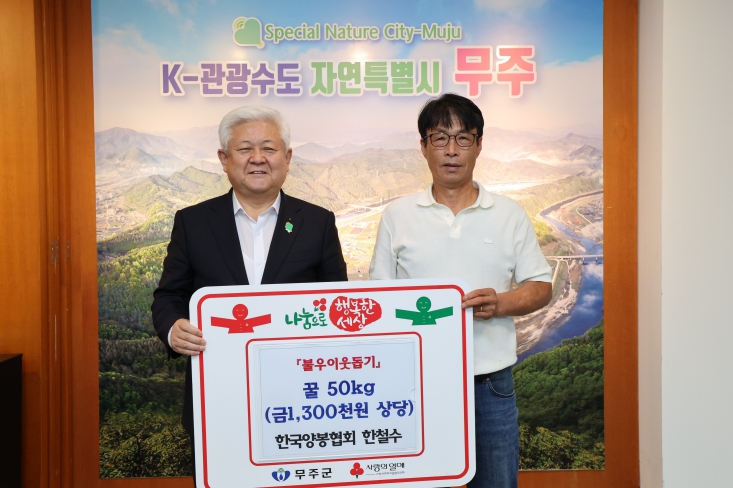 무주군에 따르면 한철수 씨는 2023년부터 벌꿀(50kg, 100만 원 상당)을 기탁하는 등 꾸준한 이웃사랑을 실천하고 있다.